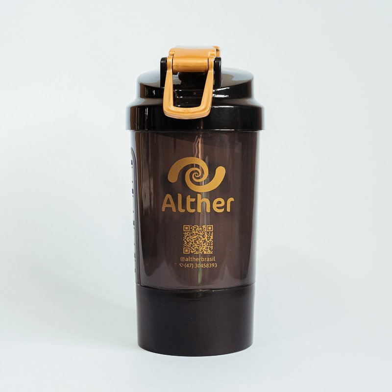 Coqueteleira Double 400ml Fumê, com Tampa preta, Alça Gold e Compartimento adicional